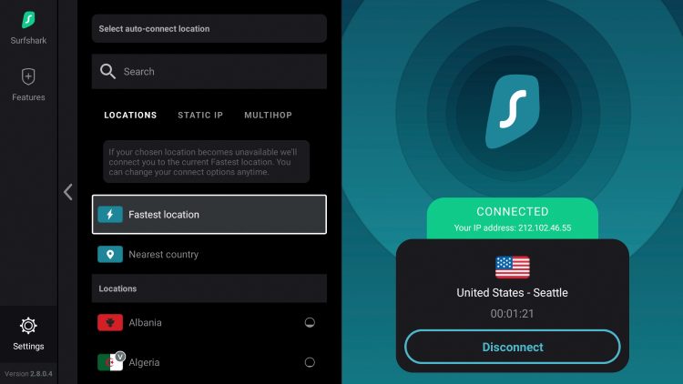 There are tons of features within the Surfshark App that make it the best VPN for Firestick. We detail all settings and features below to help you get the most out of your VPN connection.