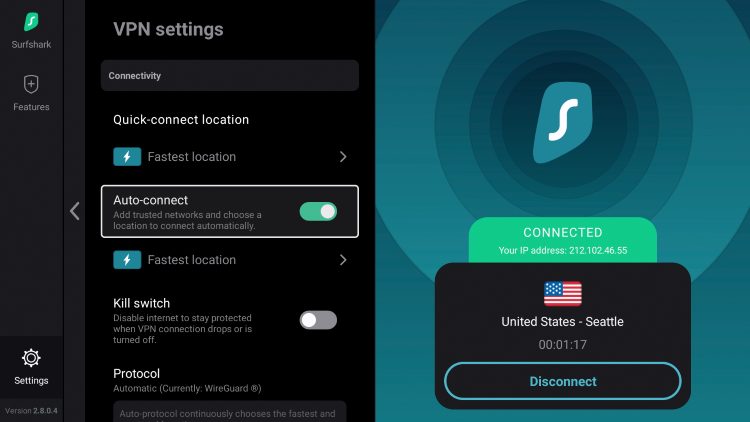 Auto-connect is the best way to use Surfshark on Firestick and will automatically connect to you to your preferred server option.